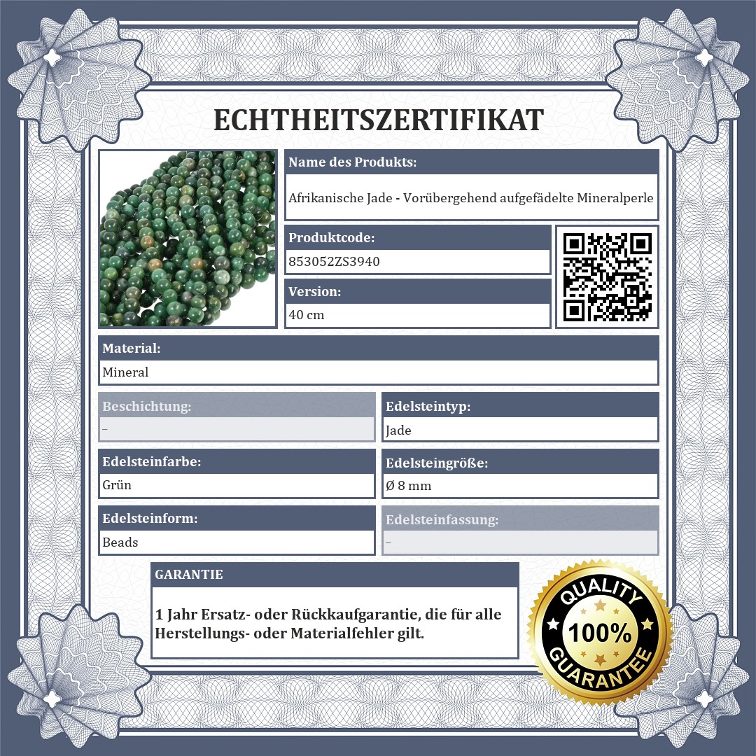 Afrikanische Jade - Vorübergehend aufgefädelte Mineralperle