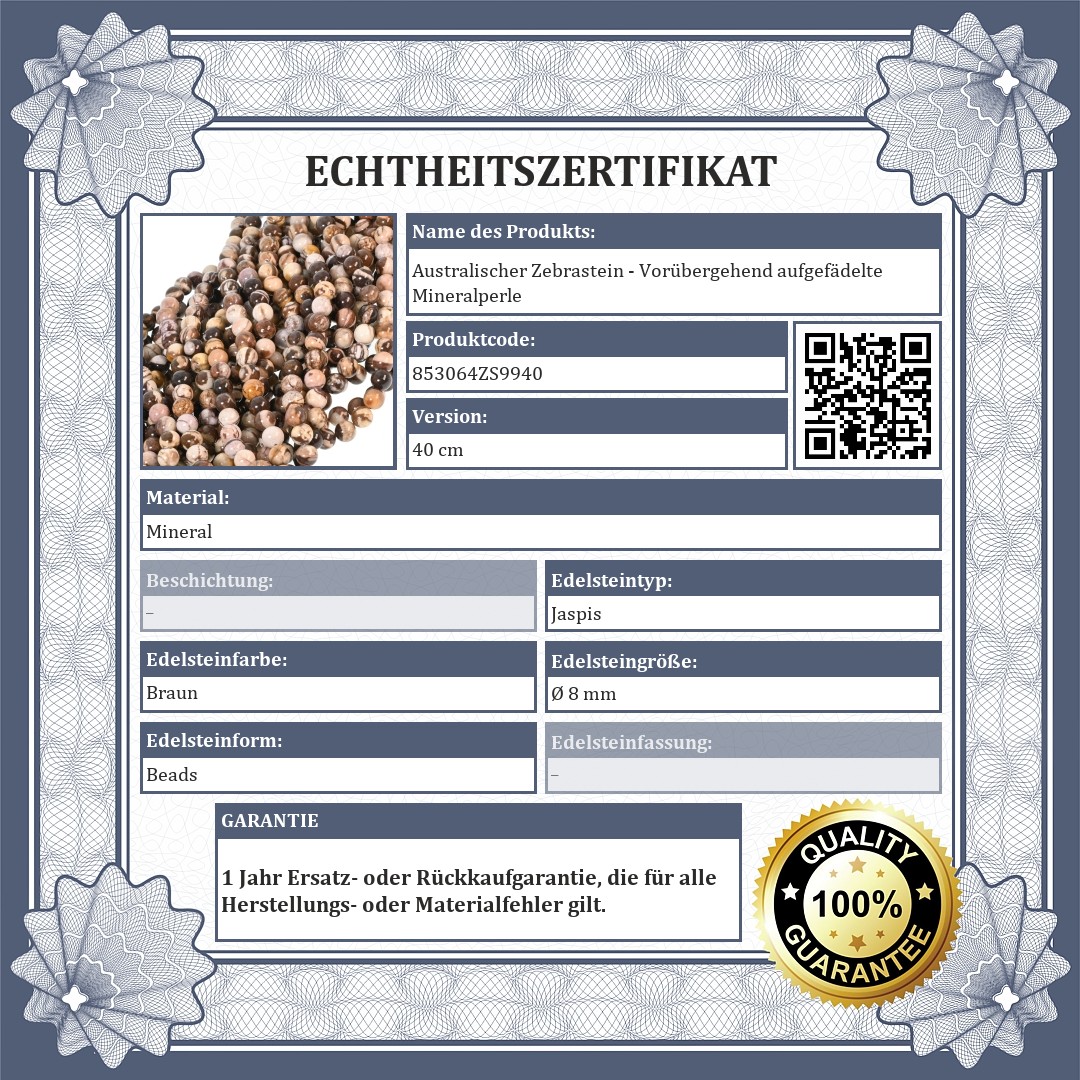 Original australisches Zebrastein Jaspis-Mineral Perlen.