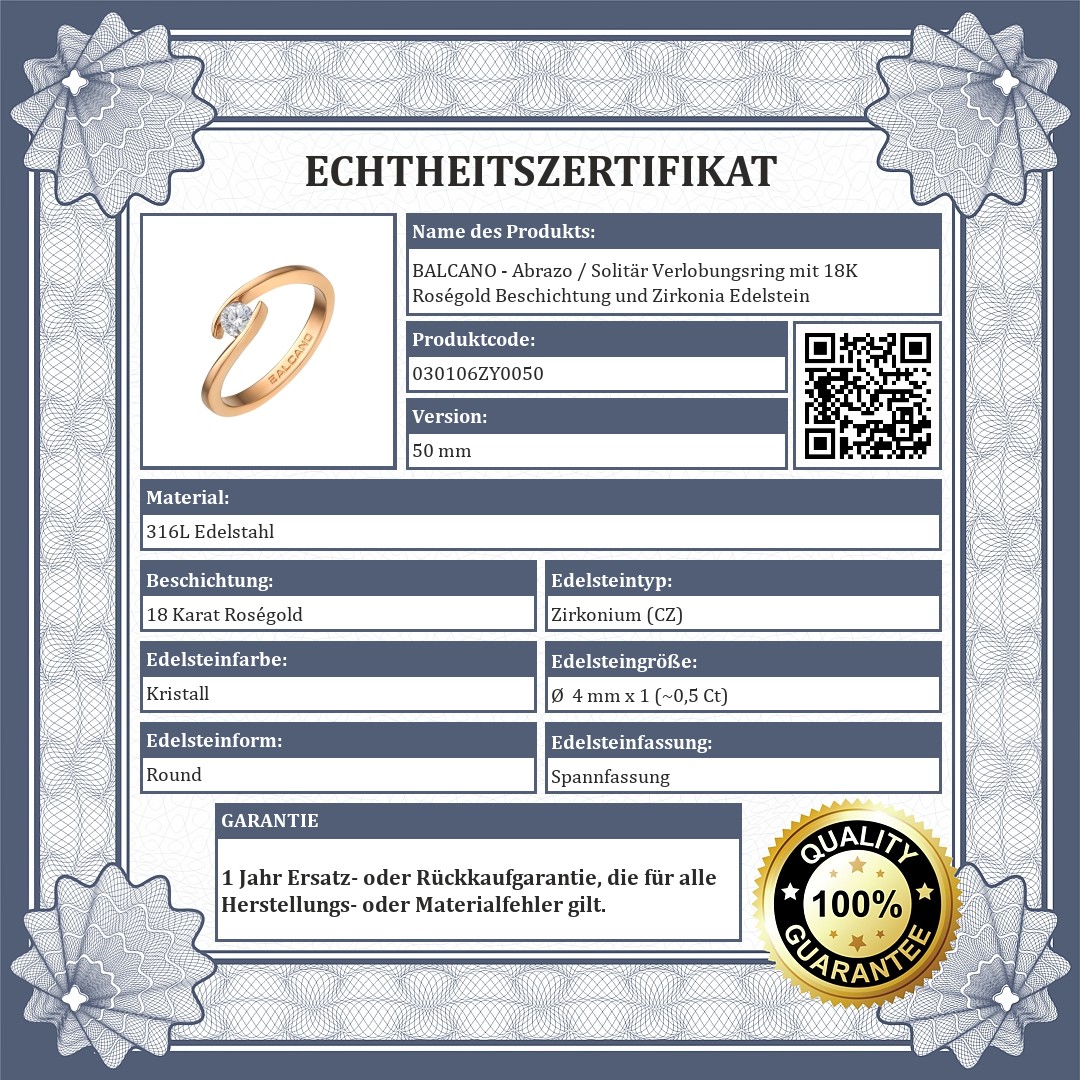 BALCANO - Abrazo / Solitär Verlobungsring mit 18K Roségold Beschichtung und Zirkonia Edelstein