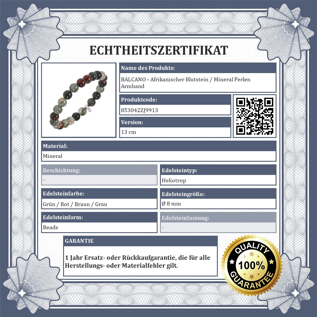 BALCANO - Afrikanischer Blutstein / Mineral Perlen Armband