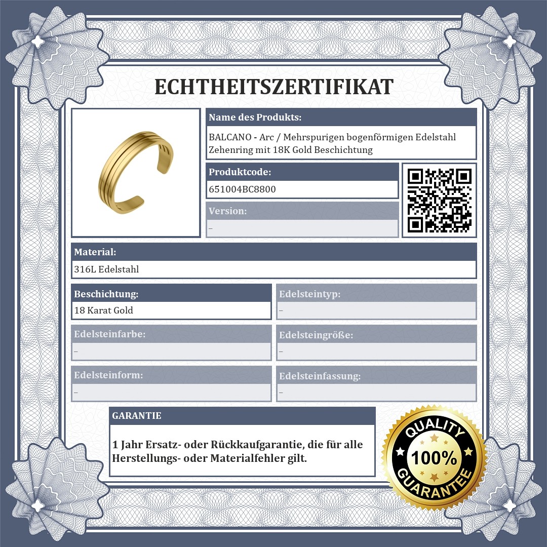 Antiallergisch Schmuck aus medizinischem 316L-Edelstahl mit 18K Gold Beschichtung. Der Zehenring stellt einen mehrspurigen Bogen dar.