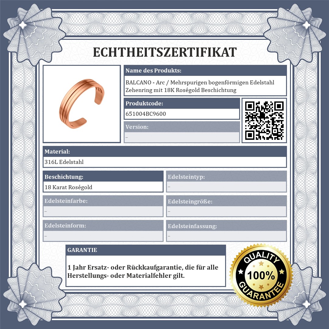 Antiallergisch Schmuck aus medizinischem 316L-Edelstahl mit 18K Roségoldbeschichtung. Der Zehenring stellt einen mehrspurigen Bogen dar.
