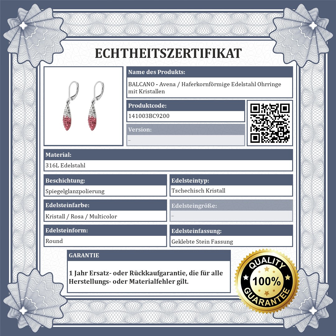 BALCANO - Avena / Haferkornförmige Edelstahl Ohrringe mit Kristallen