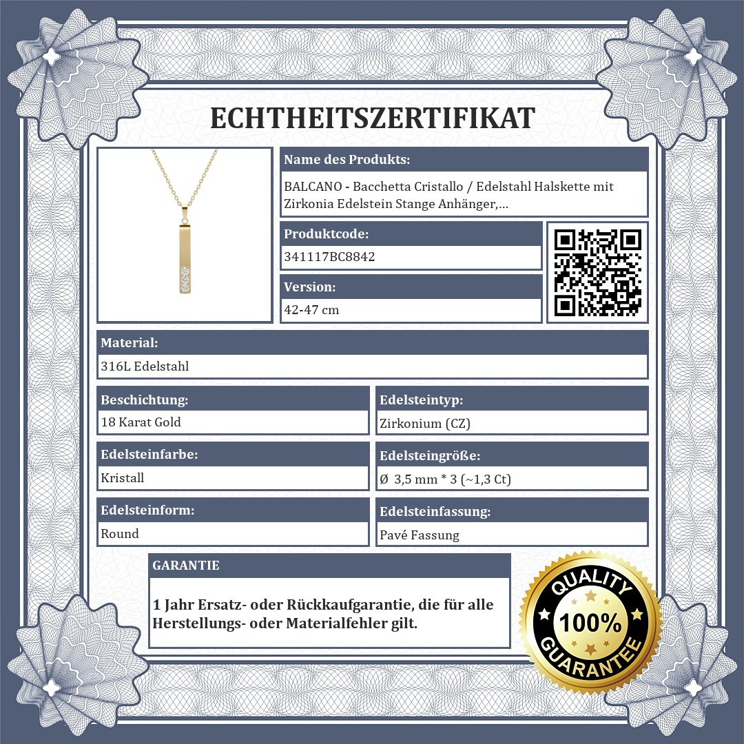 BALCANO - Bacchetta Cristallo / Edelstahl Halskette mit Zirkonia Edelstein Stange Anhänger, 18K Vergoldung