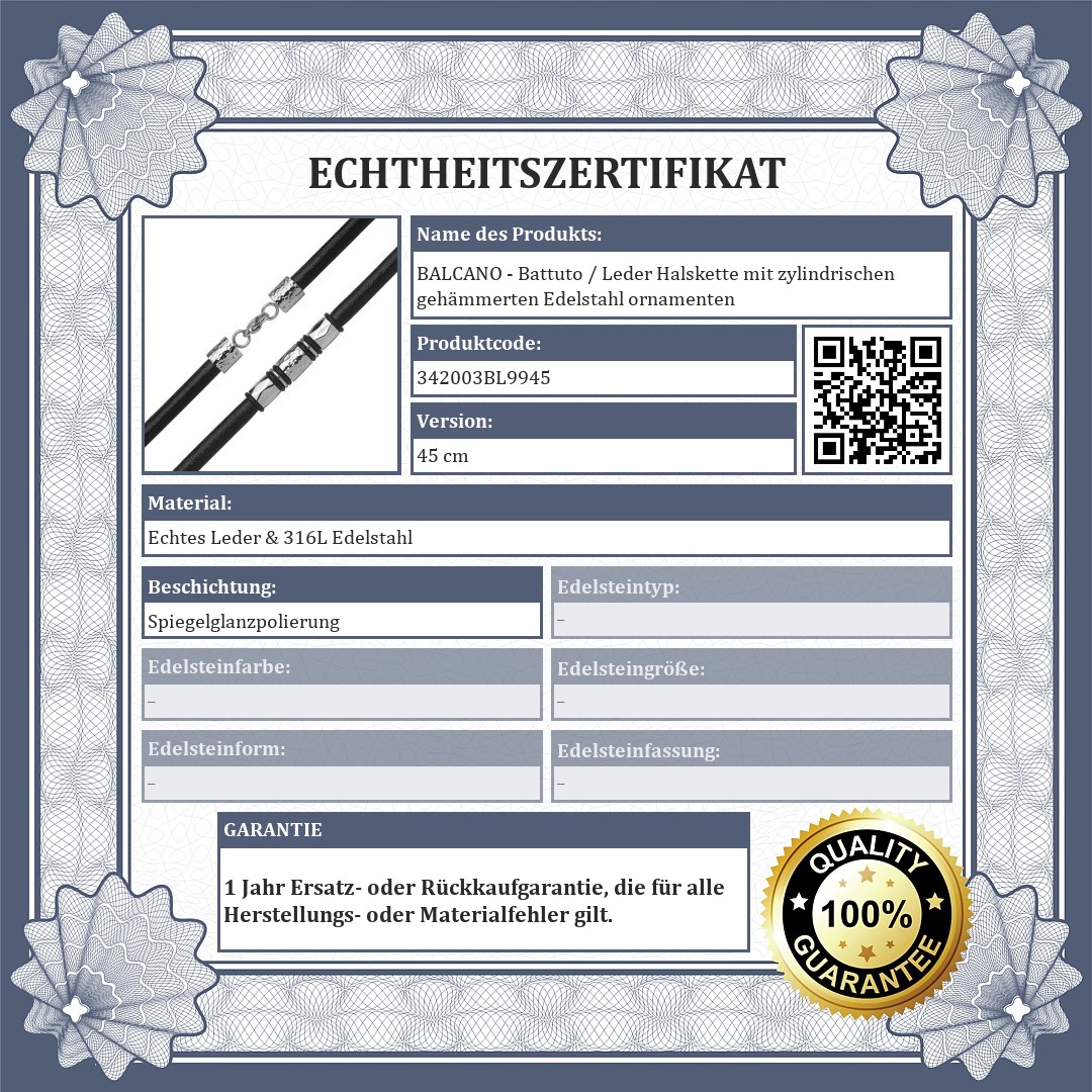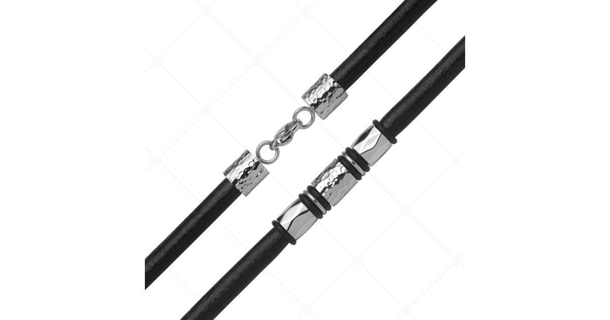 BALCANO - Battuto / Leder Halskette mit zylindrischen gehämmerten Edelstahl ornamenten