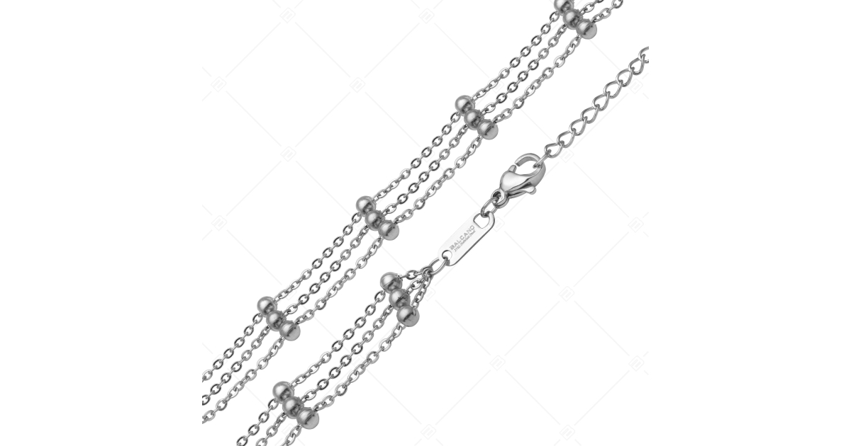Einzigartige, modische, mehrreihige Flache Ankerkette mit Kugeln. Hergestellt aus hochwertigem, antiallergenem 316L-Edelstahl und Hochglanzpolierung.