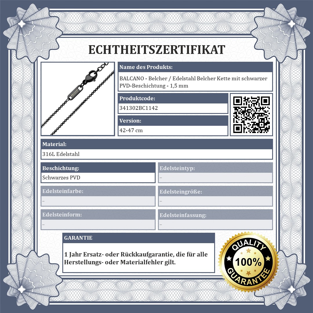 BALCANO - Belcher / Edelstahl Belcher Kette mit schwarzer PVD-Beschichtung - 1,5 mm