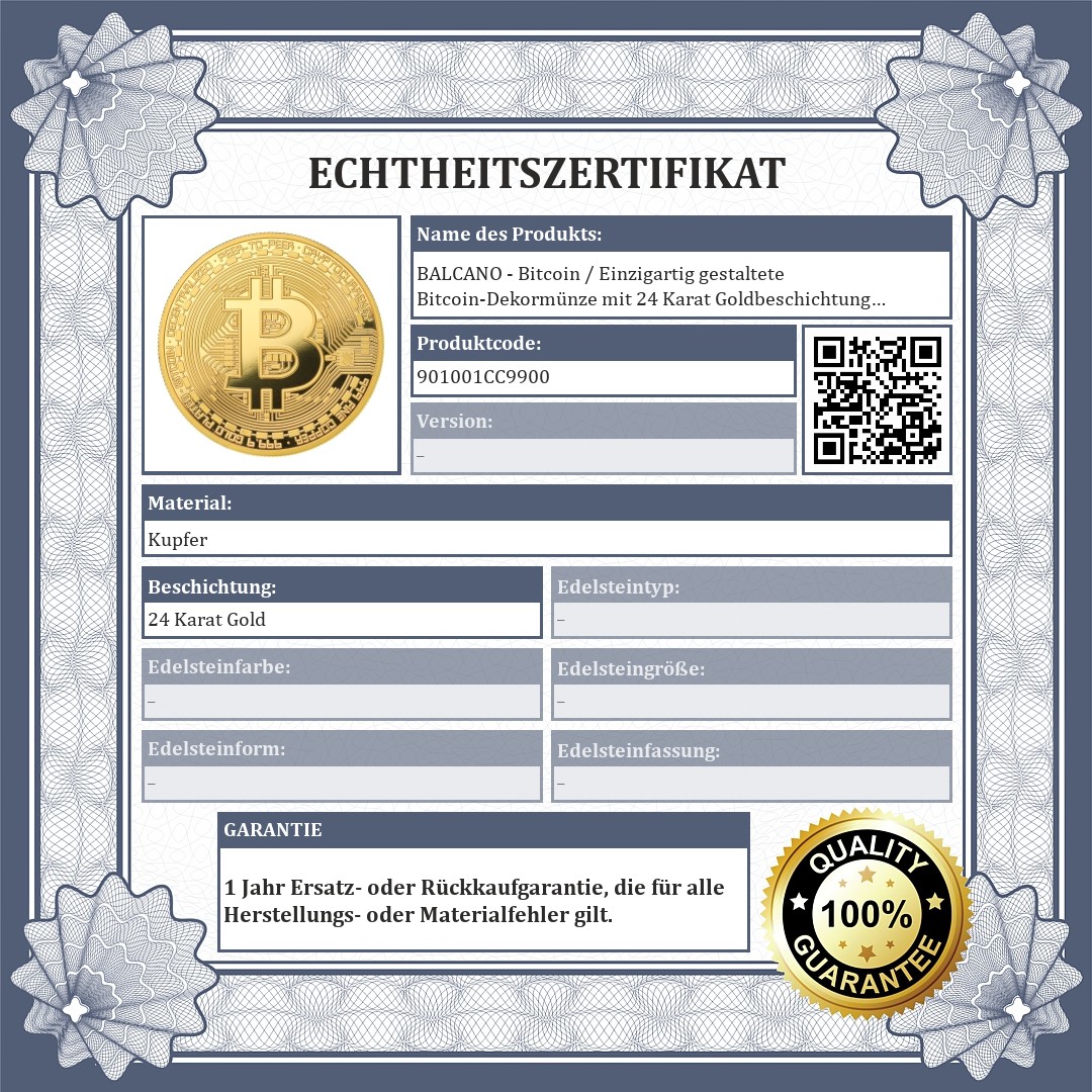 BALCANO - Bitcoin / Einzigartig gestaltete Bitcoin-Dekormünze mit 18 Karat Goldbeschichtung in einer Geschenkbox