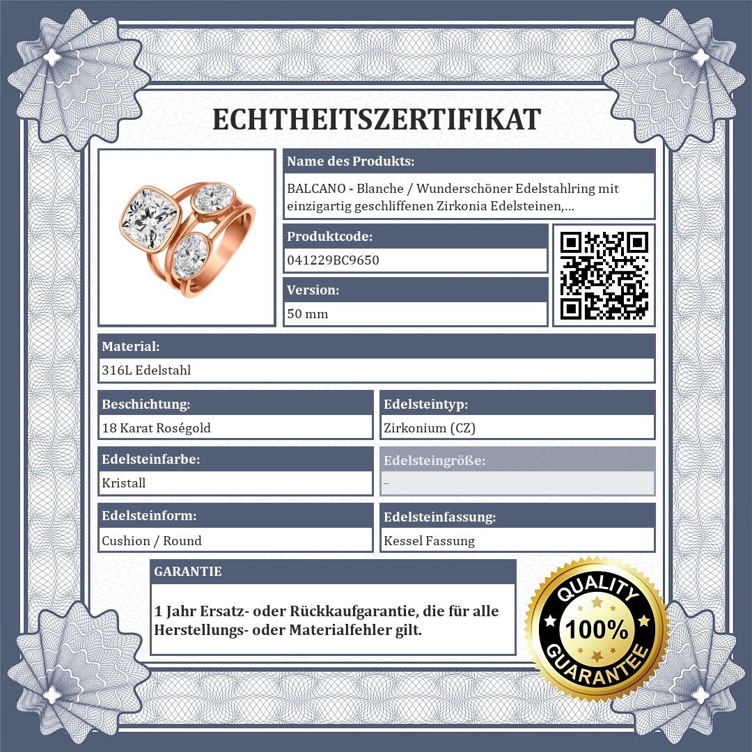 BALCANO - Blanche / Wunderschöner Edelstahlring mit einzigartig geschliffenen Zirkonia Edelsteinen, 18K rosévergoldet