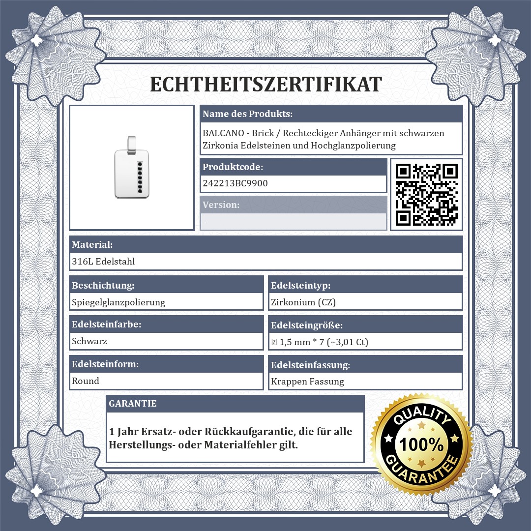 BALCANO - Brick / Rechteckiger Anhänger mit schwarzen Zirkonia Edelsteinen und Hochglanzpolierung