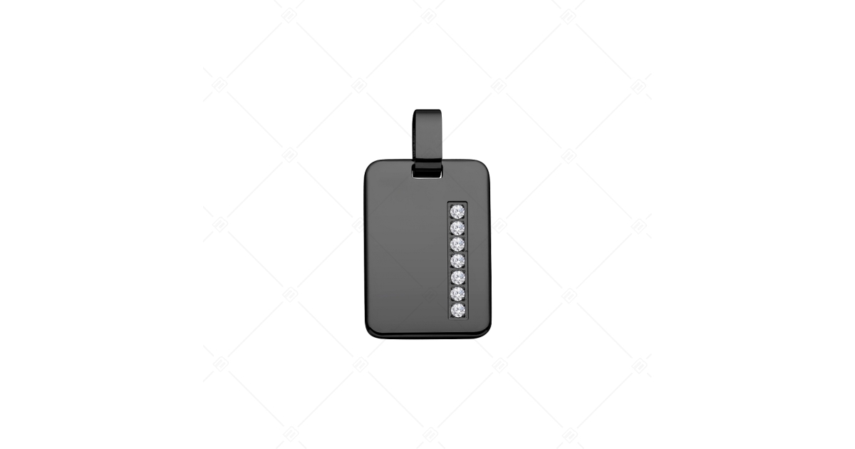 Rechteckiger Anhänger aus antiallergischem, medizinischer 316L-Edelstahl, schwarz PVD-beschichtet. Glatte oberfläche, geeignet für gravuren, aber auch ein dekoratives Zubehör, da er mit schönen, funkelnden, klaren Kristallen besetzt ist.