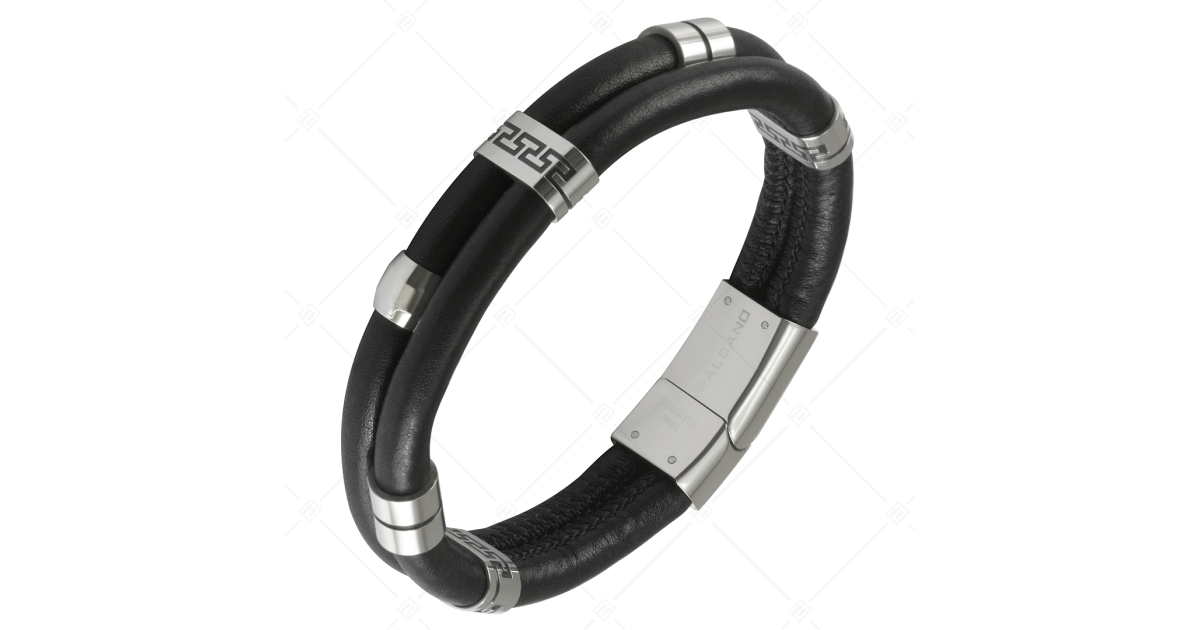 BALCANO - Capri / Zweireihig genähtes Rindsleder Edelstahl Armband mit griechischem Muster