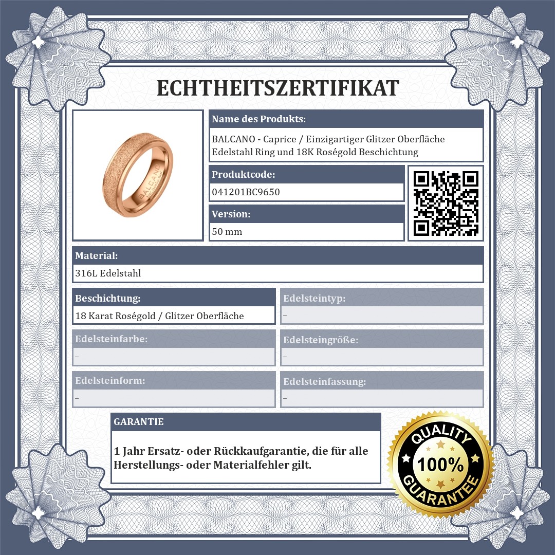 BALCANO - Caprice / Einzigartiger Glitzer Oberfläche Edelstahl Ring und 18K Roségold Beschichtung