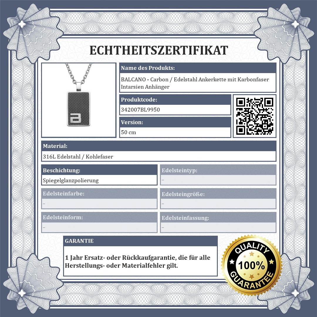 BALCANO - Carbon / Edelstahl Ankerkette mit Karbonfaser Intarsien Anhänger