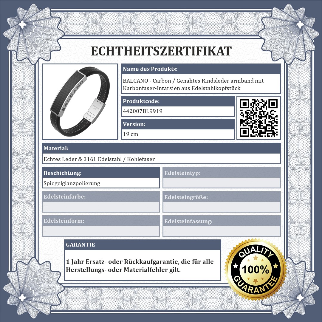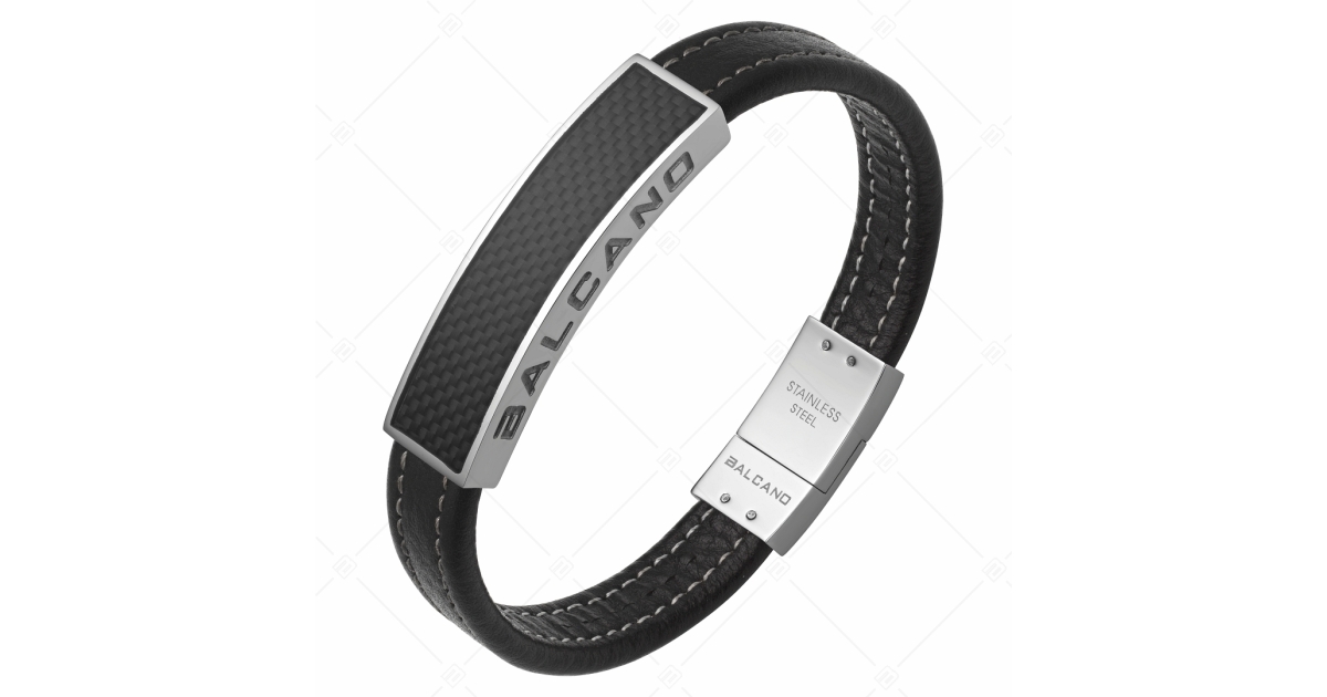 BALCANO - Carbon / Genähtes Rindsleder armband mit Karbonfaser-Intarsien aus Edelstahlkopfstück