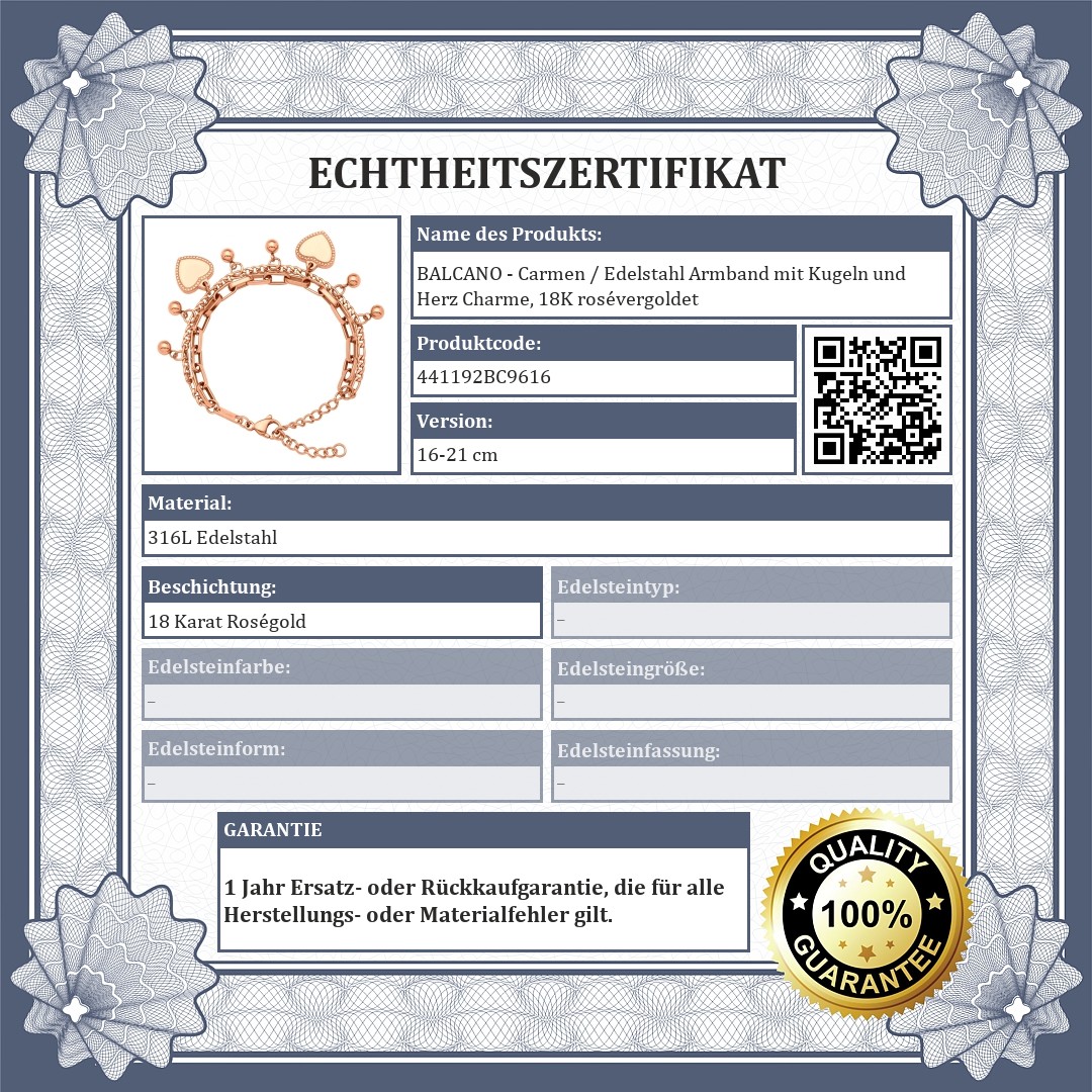 BALCANO - Carmen / Edelstahl Armband mit Kugeln und Herz Charme, 18K rosévergoldet