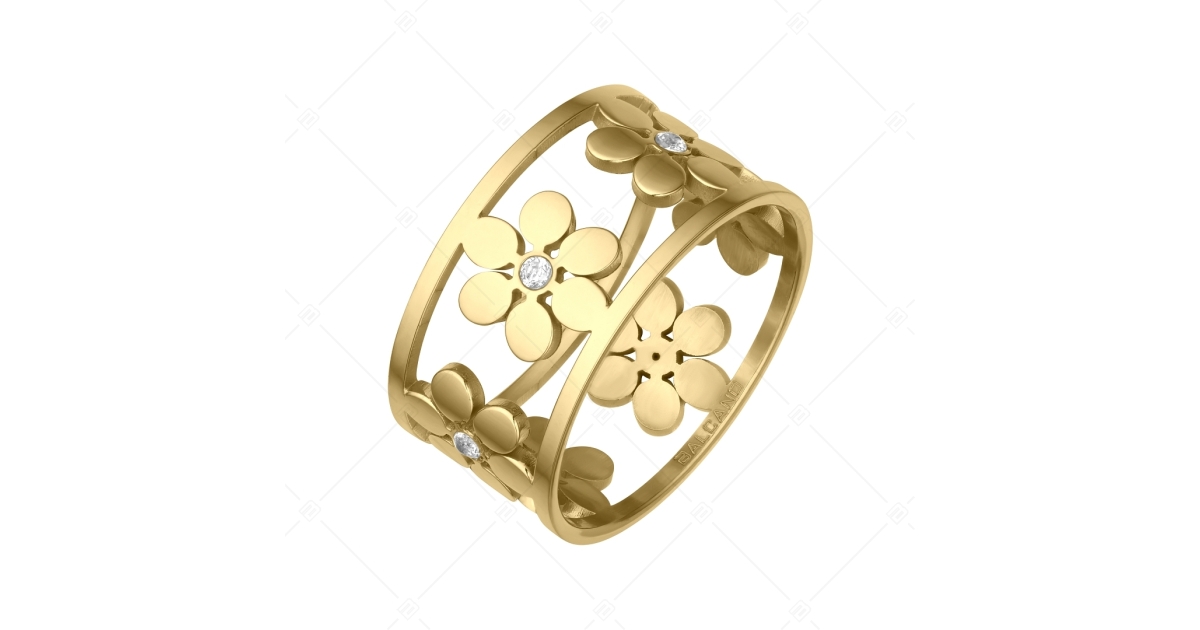 BALCANO - Clarissa / 18K Vergoldeter Edelstahl Ring mit durchbrochenem Blumenmuster und Zirkonia Edelsteinen