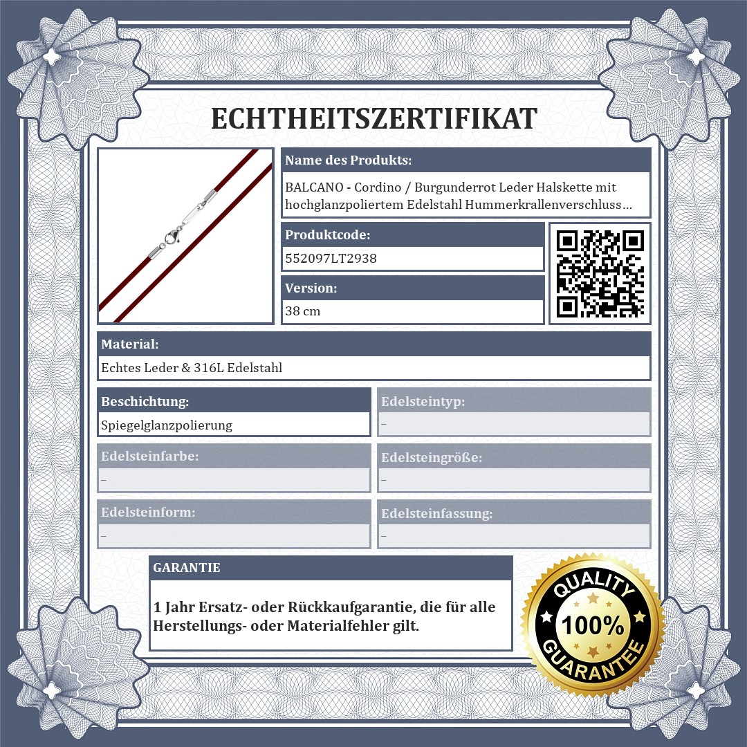 BALCANO - Cordino / Burgunderrot Leder Halskette mit hochglanzpoliertem Edelstahl Hummerkrallenverschluss - 2 mm