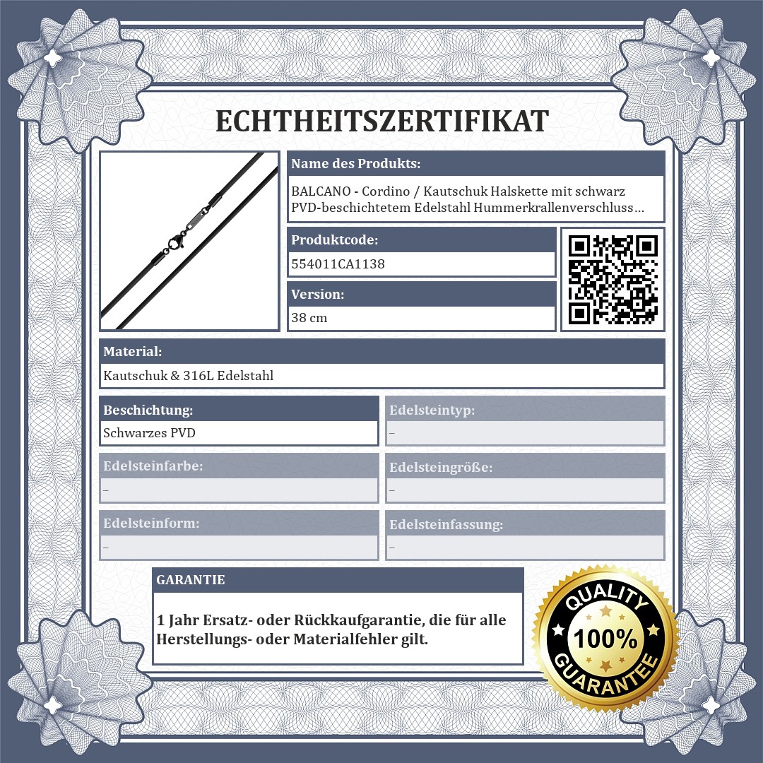 BALCANO - Cordino / Kautschuk Halskette mit schwarz PVD-beschichtetem Edelstahl Hummerkrallenverschluss - 2 mm
