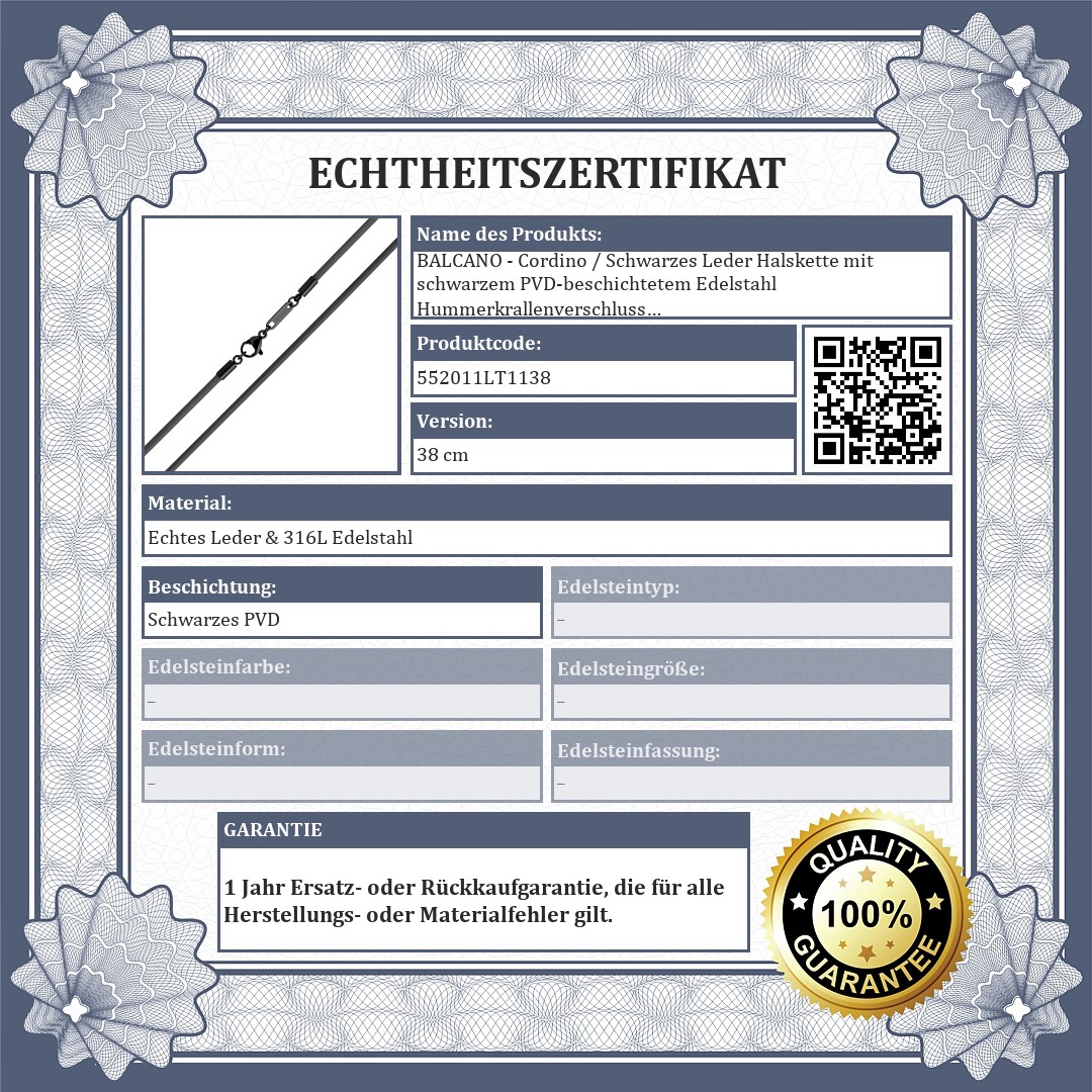 BALCANO - Cordino / Schwarzes Leder Halskette mit schwarzem PVD-beschichtetem Edelstahl Hummerkrallenverschluss - 2 mm