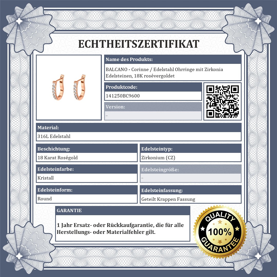 BALCANO - Corinne / Edelstahl Ohrringe mit Zirkonia Edelsteinen, 18K rosévergoldet