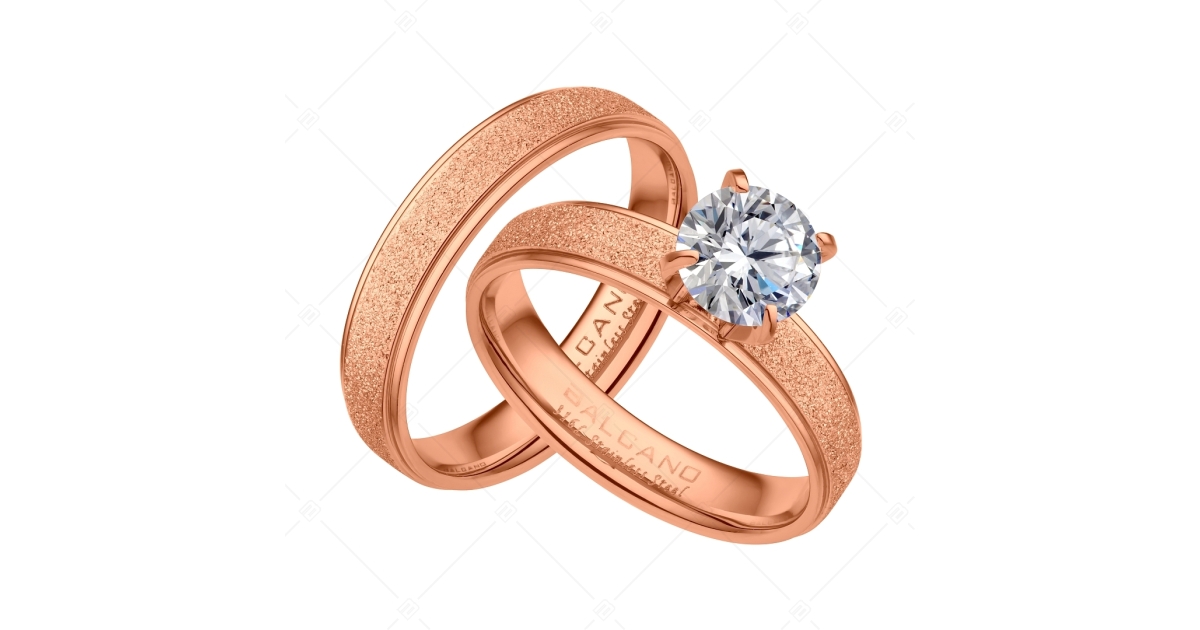 BALCANO - Cornelia / Einzigartiges Edelstahl Ringpaar mit Glitzer Oberfläche und 18K rosévergoldet und mit Zirkonia-Edel