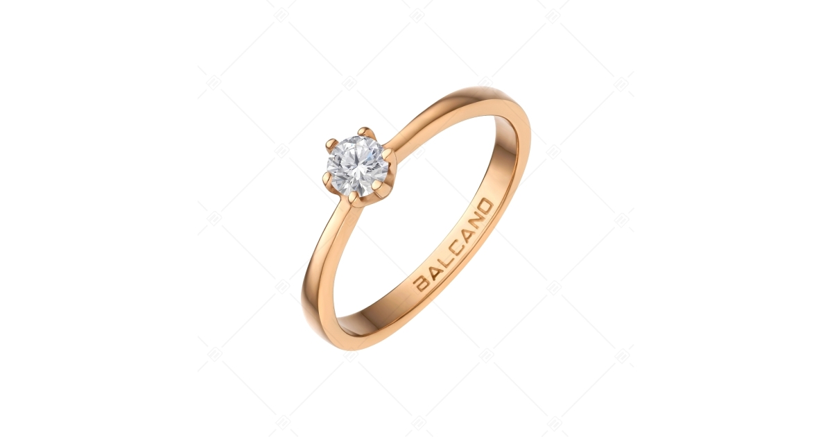 BALCANO - Corona / Solitär Verlobungsring mit 18K Roségold Beschichtung und Zirkonia Edelstein
