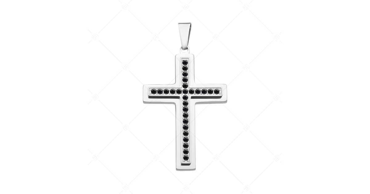 BALCANO - Crux / Kreuzförmiger Anhänger mit schwarzen Zirkonia Edelsteinen, Hochglanzpolierung