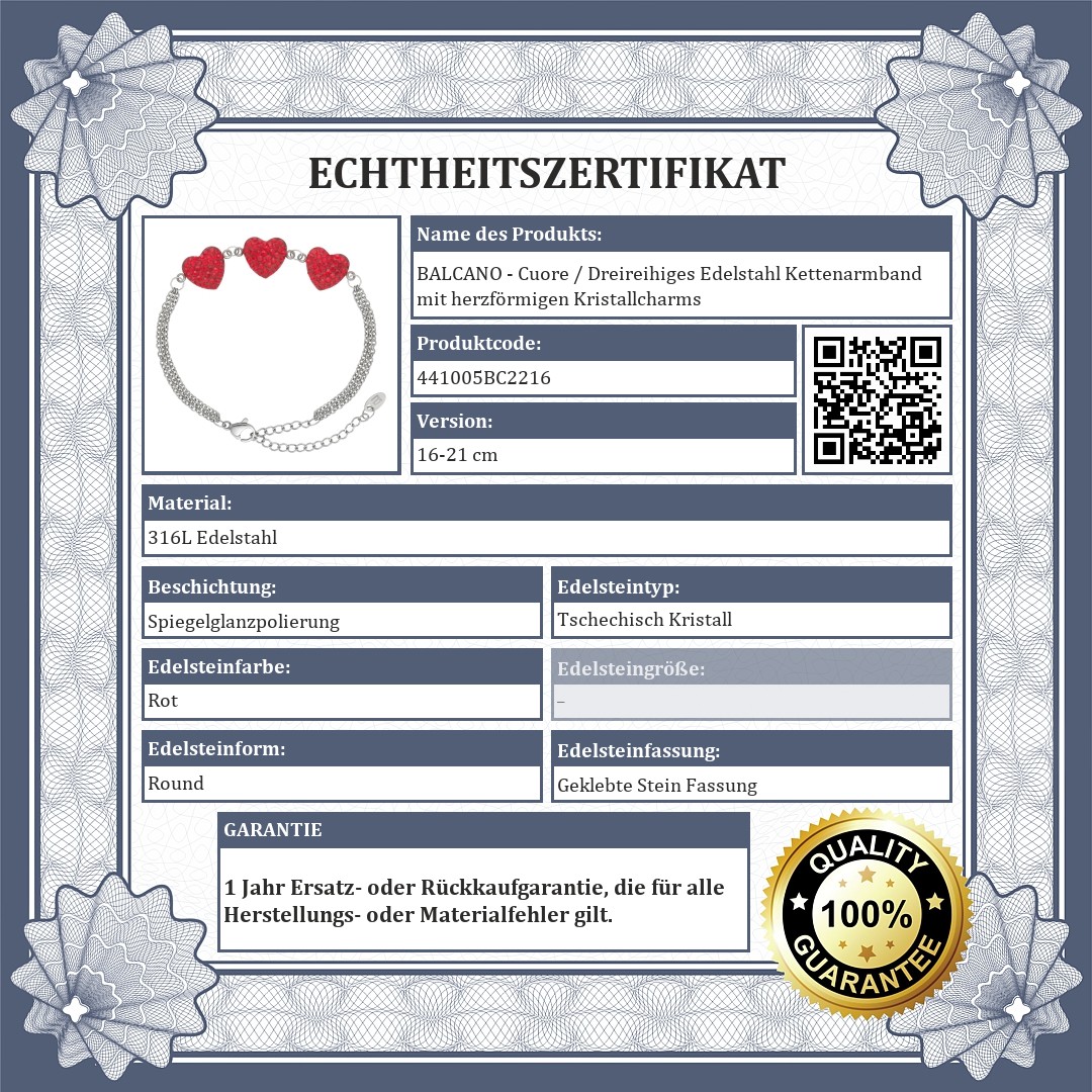 BALCANO - Cuore / Dreireihiges Edelstahl Kettenarmband mit herzförmigen Kristallcharms
