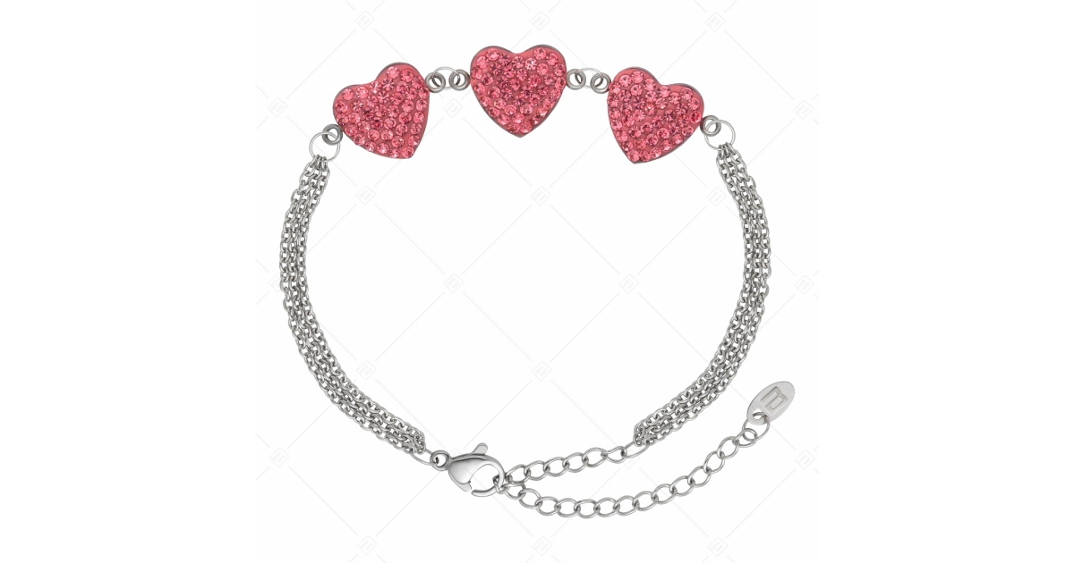 BALCANO - Cuore / Dreireihiges Edelstahl Kettenarmband mit herzförmigen Kristallcharms