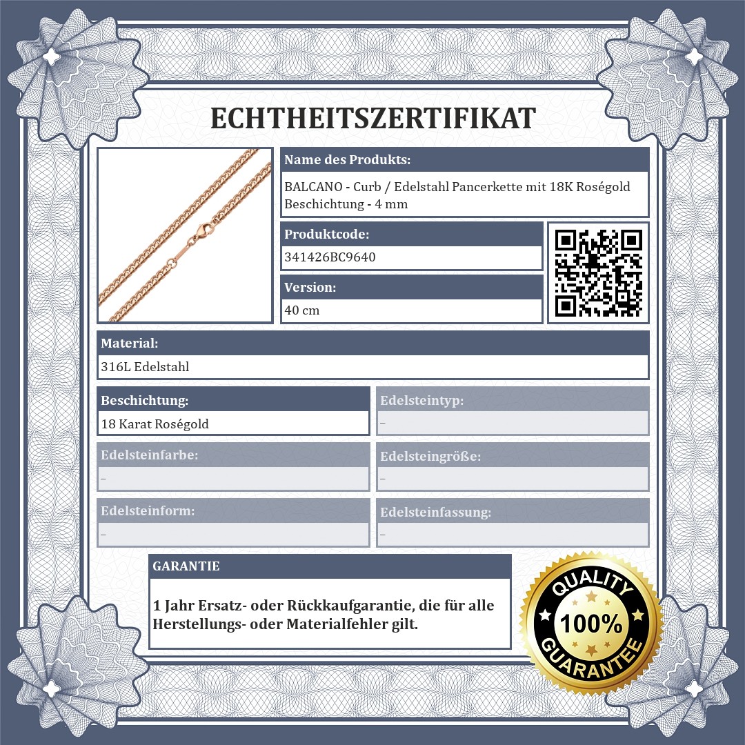 BALCANO - Curb / Edelstahl Pancerkette mit 18K Roségold Beschichtung - 4 mm