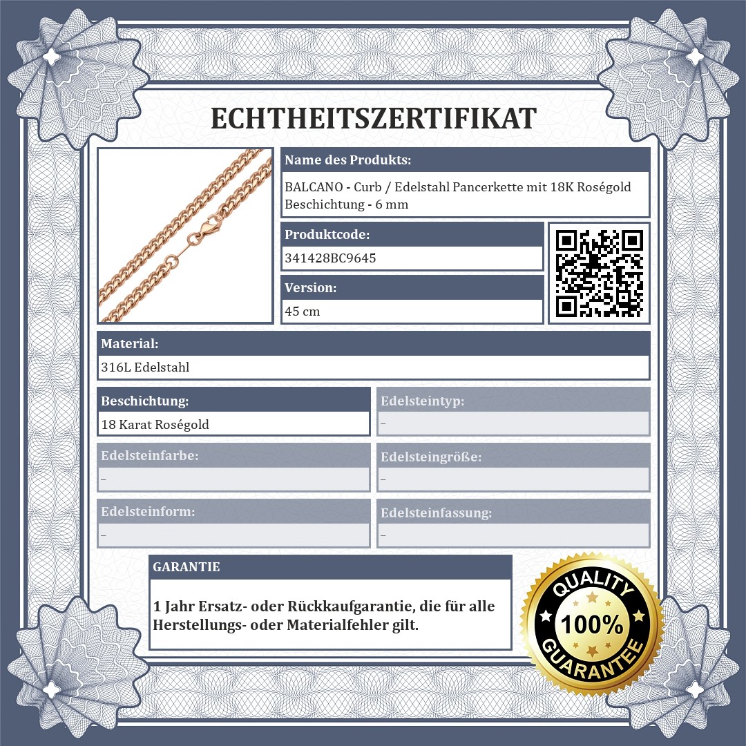 BALCANO - Curb / Edelstahl Pancerkette mit 18K Roségold Beschichtung - 6 mm