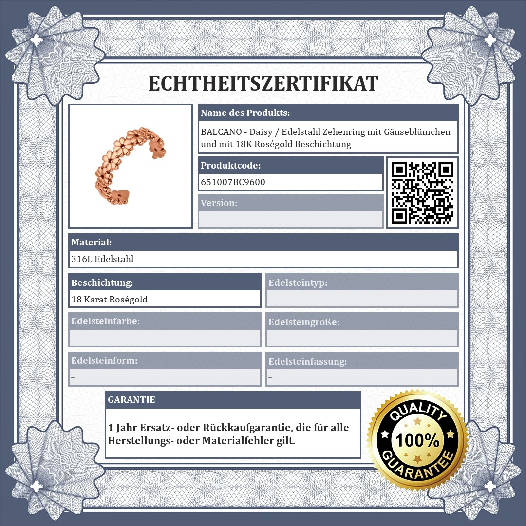 Antiallergisch Schmuck aus medizinischem 316L-Edelstahl mit 18K Roségoldbeschichtung. Der Zehenring stellt Gänseblümchen dar.