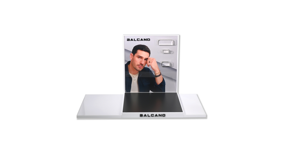 3-teilige, variierbare Basis-Displaytafel für die Herrenkollektion.