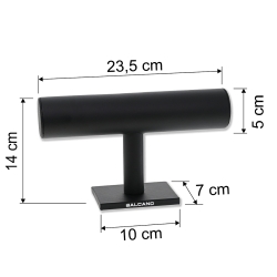 Eleganter schwarzer Displayständer aus PU-Leder, geeignet zur Präsentation von Edelstahl- oder Lederarmbändern sowie auch von Halsketten.
