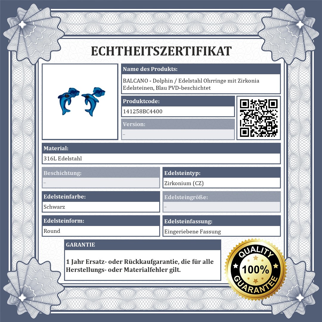 BALCANO - Dolphin / Edelstahl Ohrringe mit Zirkonia Edelsteinen, Blau PVD-beschichtet