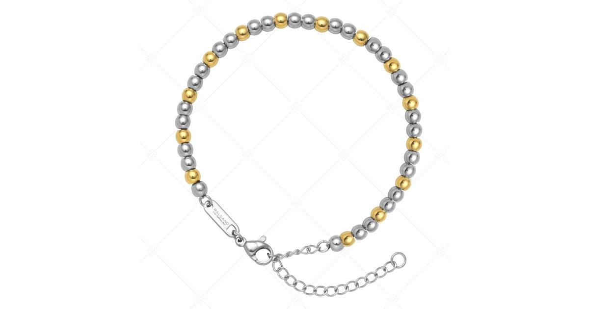 Antiallergisches Ankerarmband aus 316L-Edelstahl mit abgeflachter Maserung und Kugeln-Dekoration, silberfarben, hochglanzpoliert und 18K vergoldet. Dank seines Materials ist er extrem haltbar, verschleißfest und lichtecht.