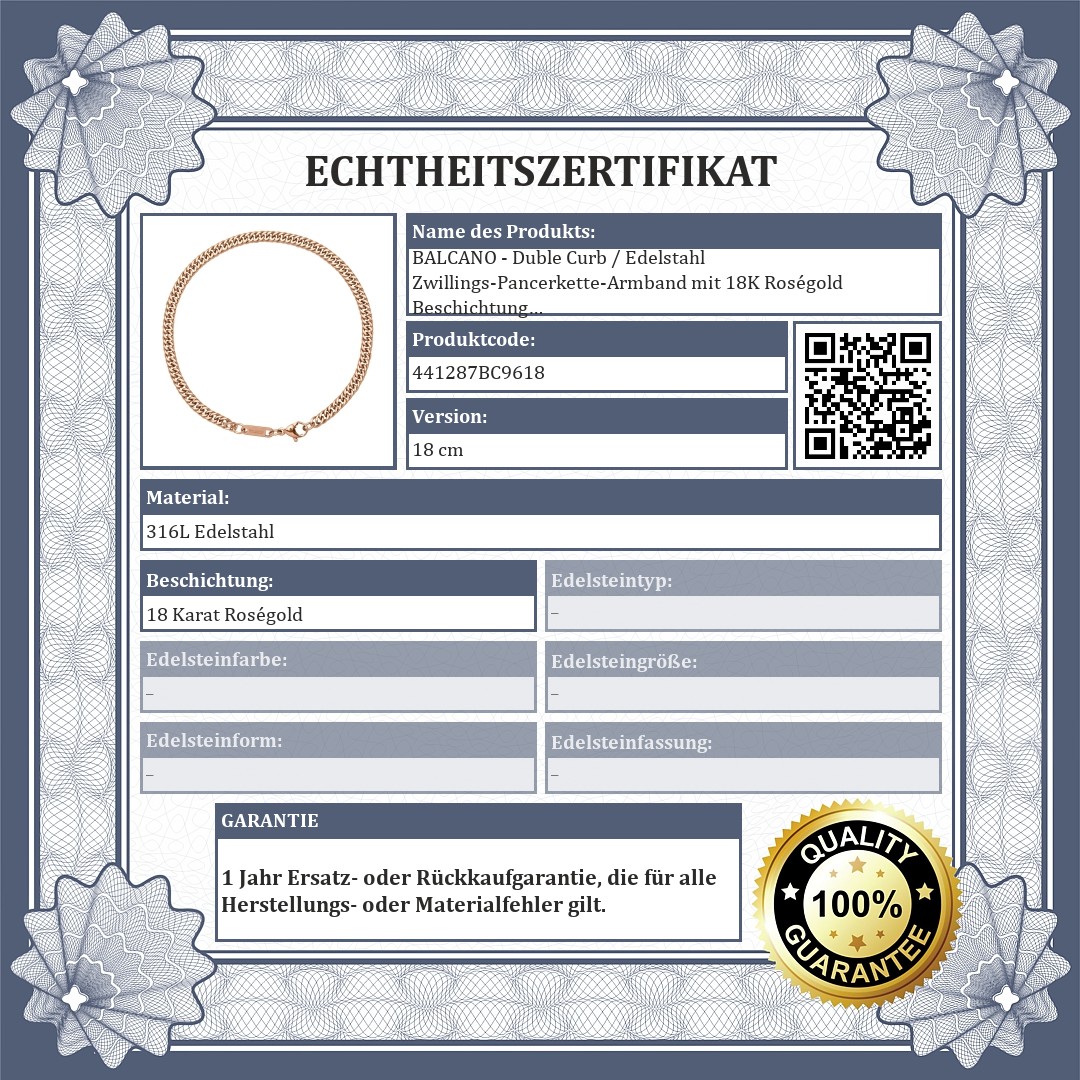 BALCANO - Duble Curb / Edelstahl Zwillings-Pancerkette-Armband mit 18K Roségold Beschichtung - 4 mm