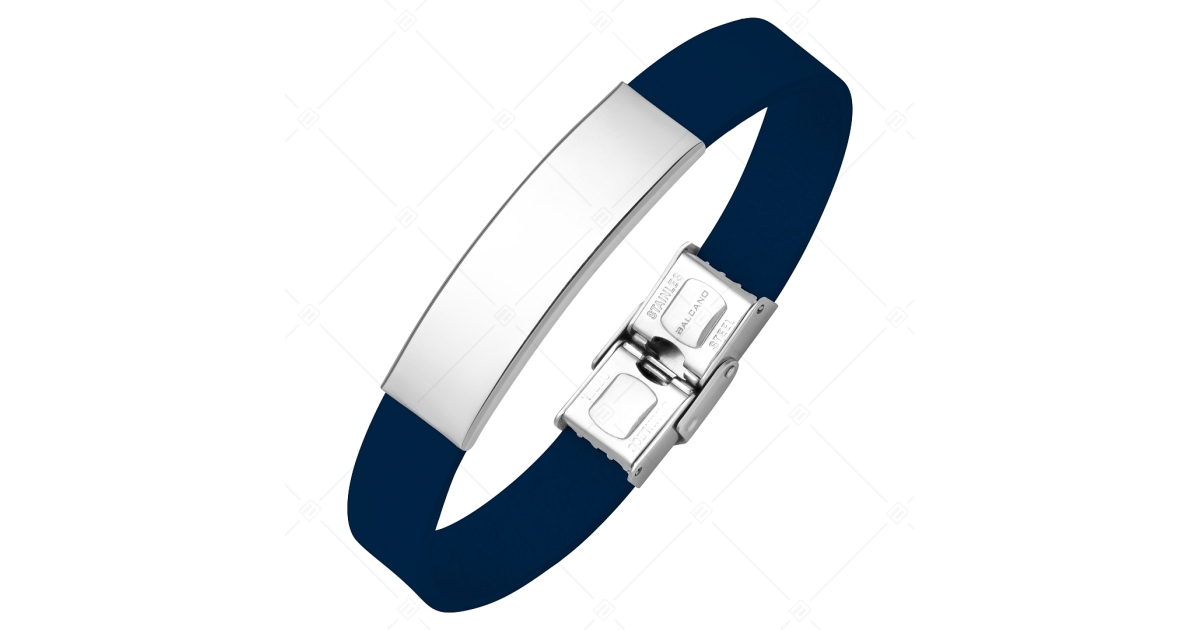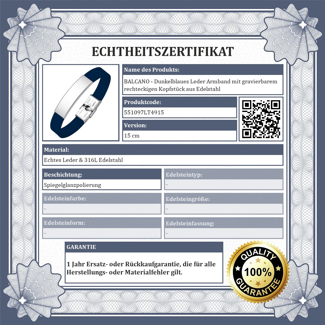 BALCANO - Dunkelblaues Leder Armband mit gravierbarem rechteckigen Kopfstück aus Edelstahl
