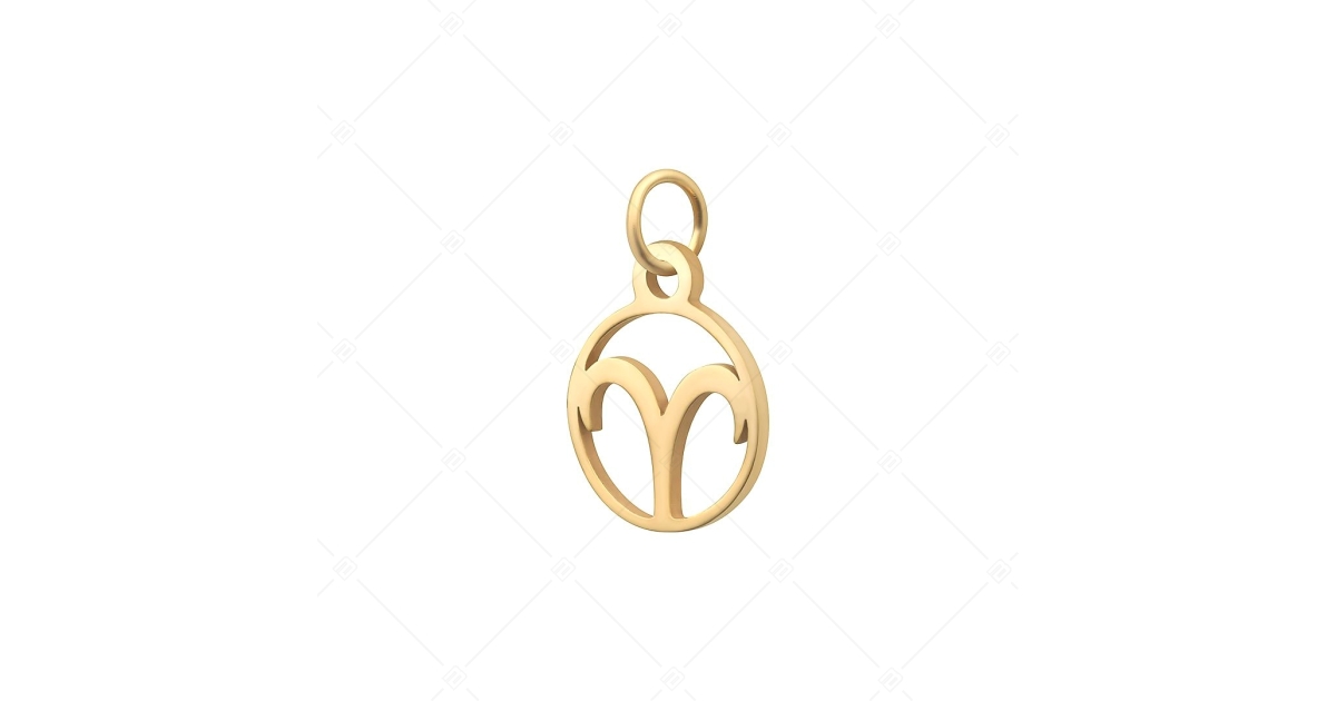 Widder Horoskop runder Charme. Schmuck aus medizinischem 316L-Edelstahl mit 18K vergoldet. Hochwertiges Zubehör.