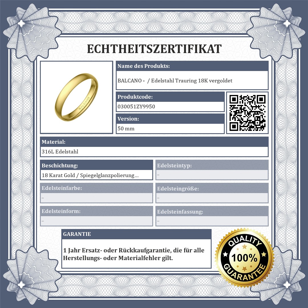 BALCANO - / Edelstahl Trauring 18K vergoldet