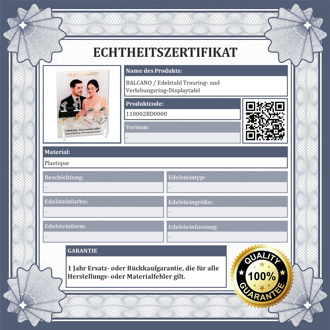 BALCANO / Edelstahl Trauring- und Verlobungsring-Displaytafel