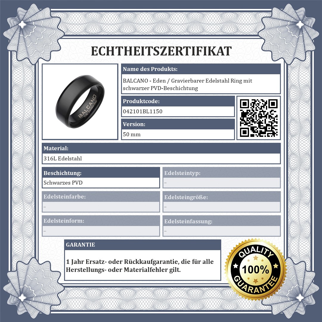 BALCANO - Eden / Gravierbarer Edelstahl Ring mit schwarzer PVD-Beschichtung