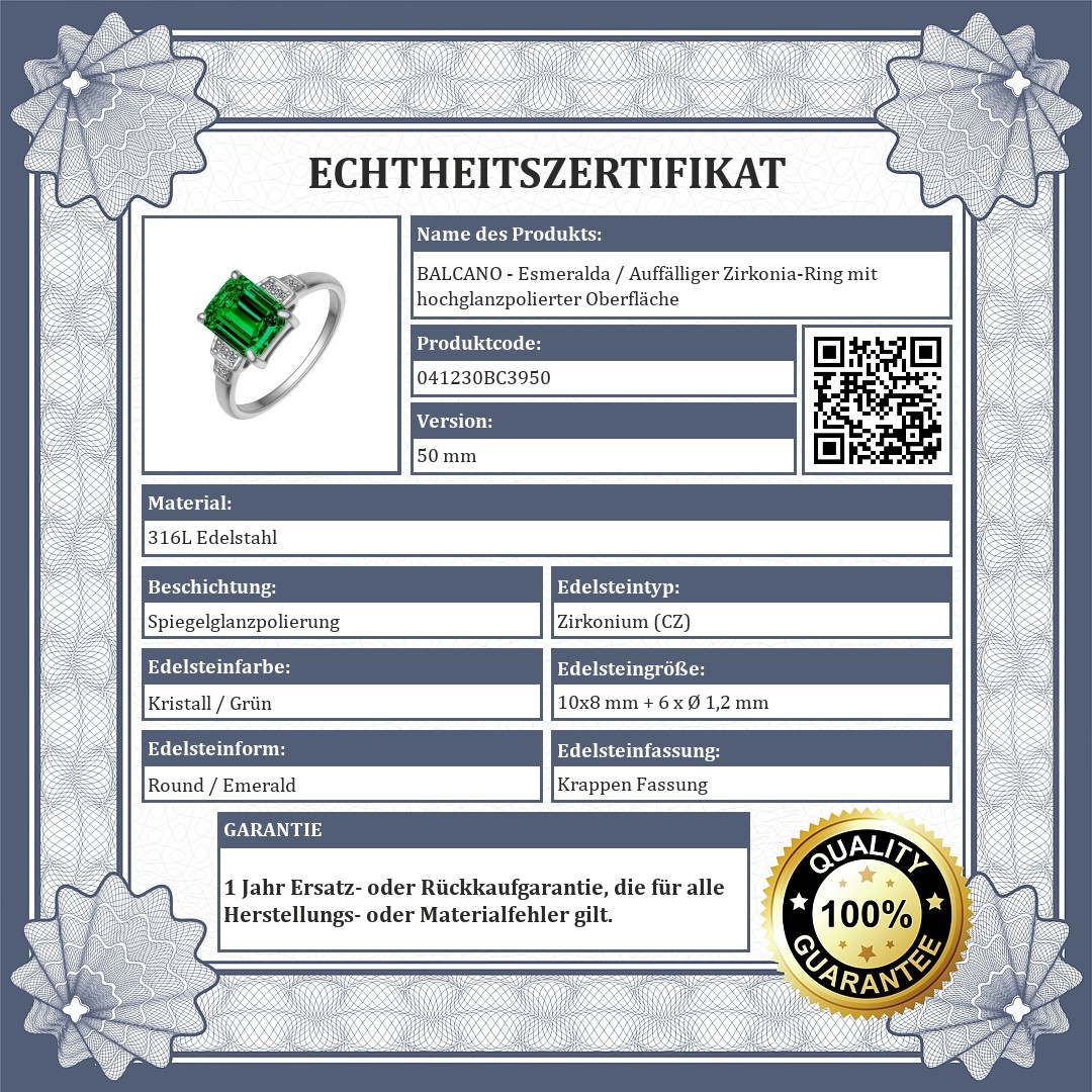 BALCANO - Esmeralda / Auffälliger Zirkonia-Ring mit hochglanzpolierter Oberfläche