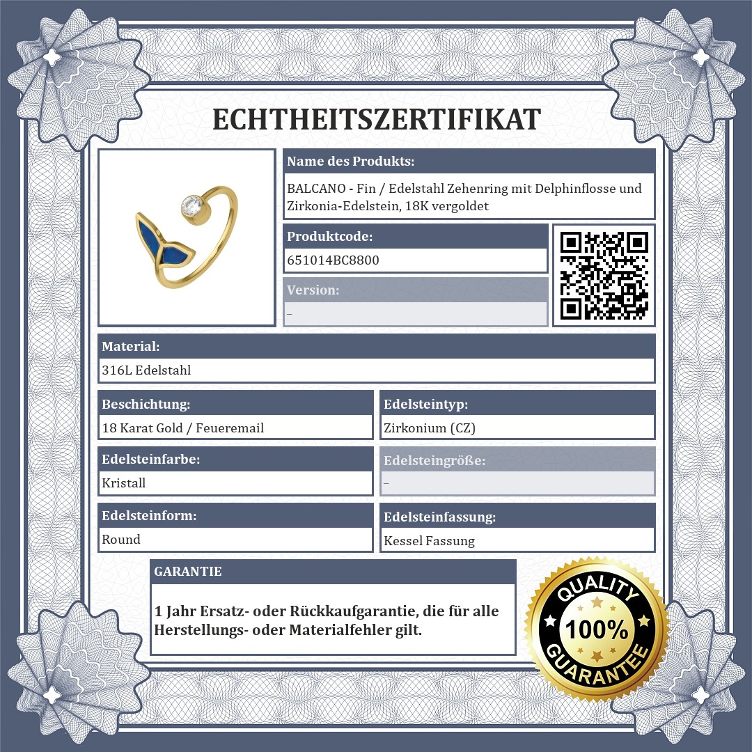 BALCANO - Fin / Edelstahl Zehenring mit Delphinflosse und Zirkonia-Edelstein, 18K vergoldet