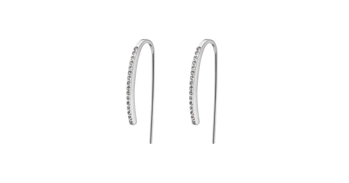 Besondere geschwungene Ohrringe mit funkelnden, klaren Zirkonia Edelsteinen. Medizinischer 316L-Edelstahl Schmuck, der aufgrund seines Materials extrem langlebig ist, sich nicht abnutzt und sich nicht verfärbt.
