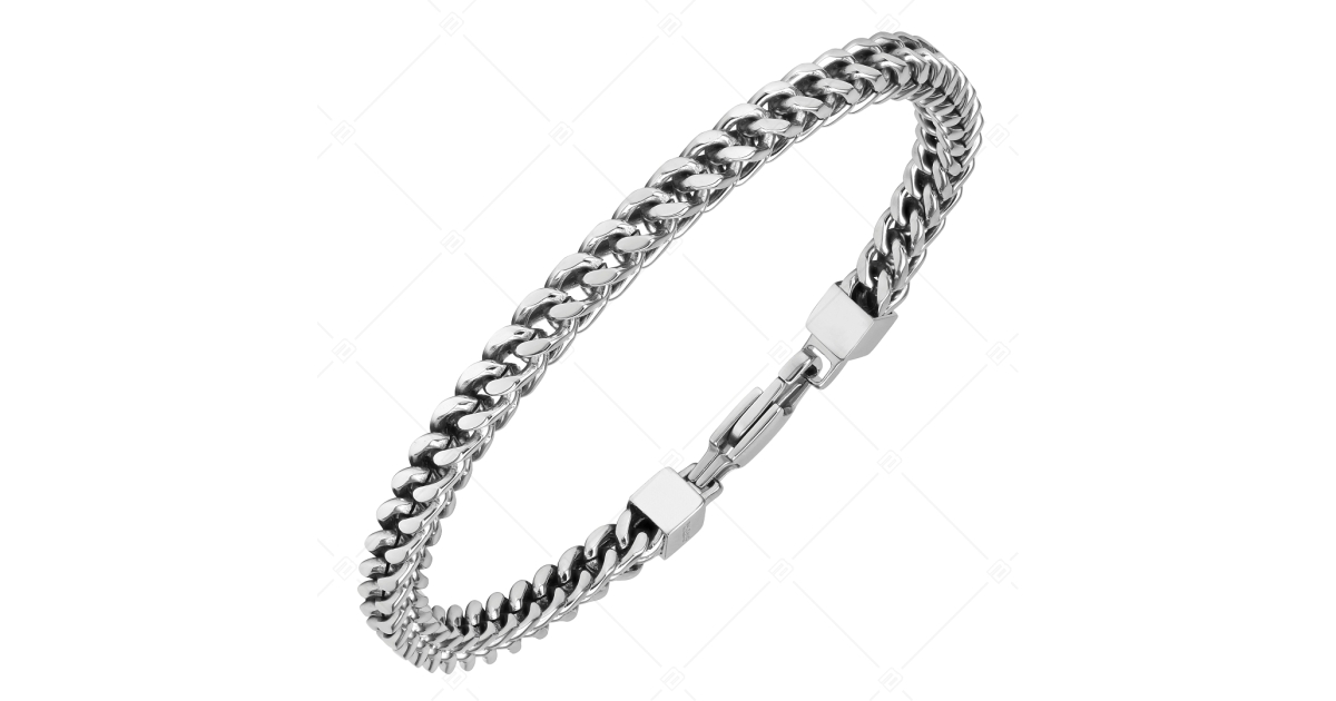 Antiallergisches Fuchsschwanz-Kettenarmband aus 316L-Edelstahl, hochglanzpoliert. Dank seines Materials verschleißt und verfärbt es sich nicht. Bequemes Kettenarmband.