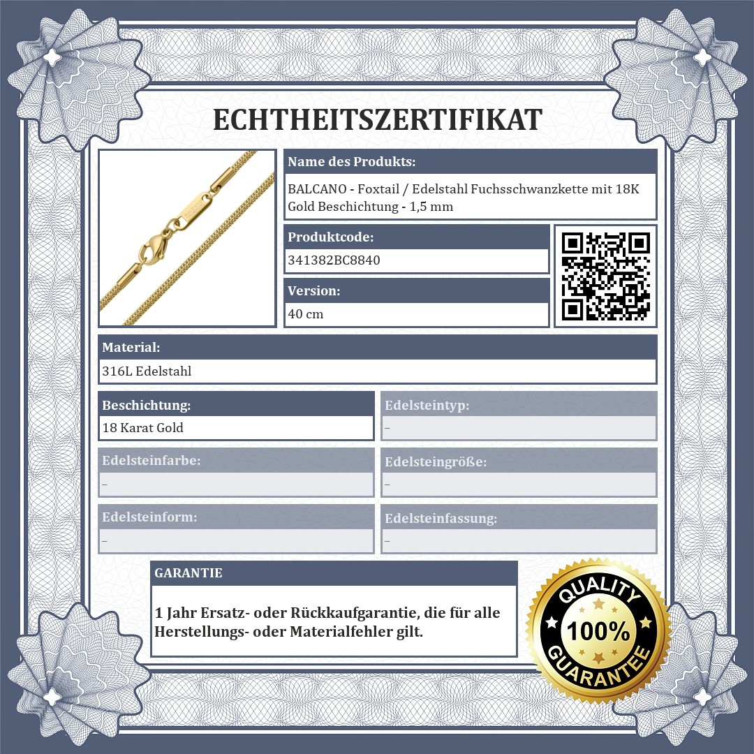 BALCANO - Foxtail / Edelstahl Fuchsschwanzkette mit 18K Gold Beschichtung - 1,5 mm
