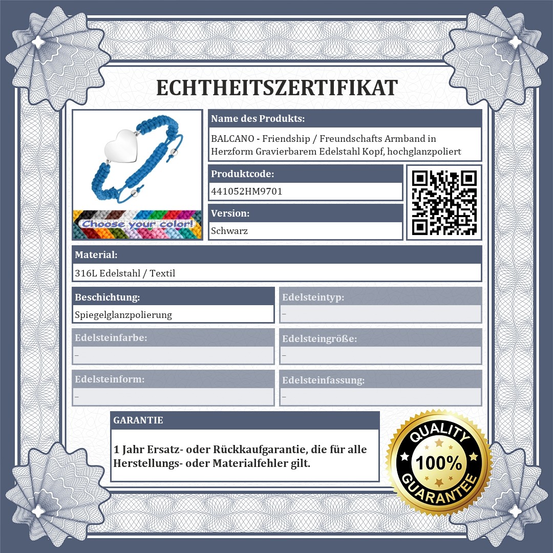 BALCANO - Friendship / Freundschafts Armband in Herzform Gravierbarem Edelstahl Kopf, hochglanzpoliert