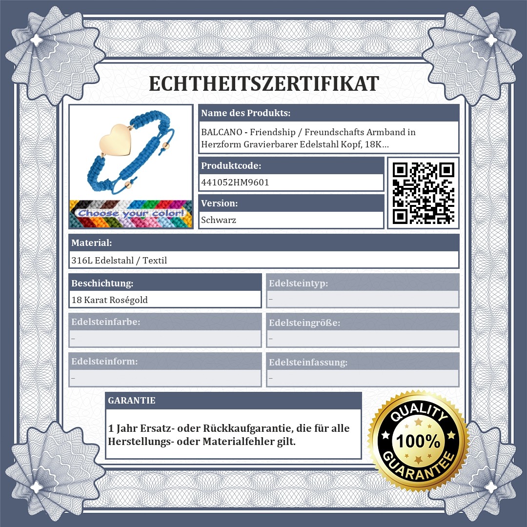 BALCANO - Friendship / Freundschafts Armband in Herzform Gravierbarer Edelstahl Kopf, 18K rosévergoldet